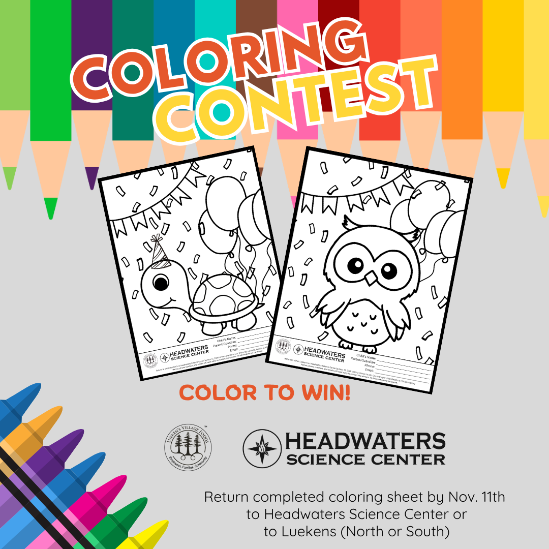 Stop to pick up a coloring sheet, or download - return by Nov. 11th for your chance to win! Click below for more details.