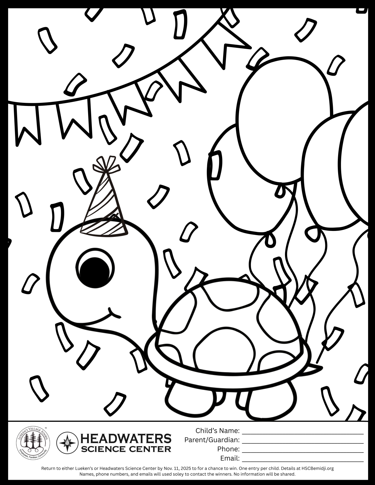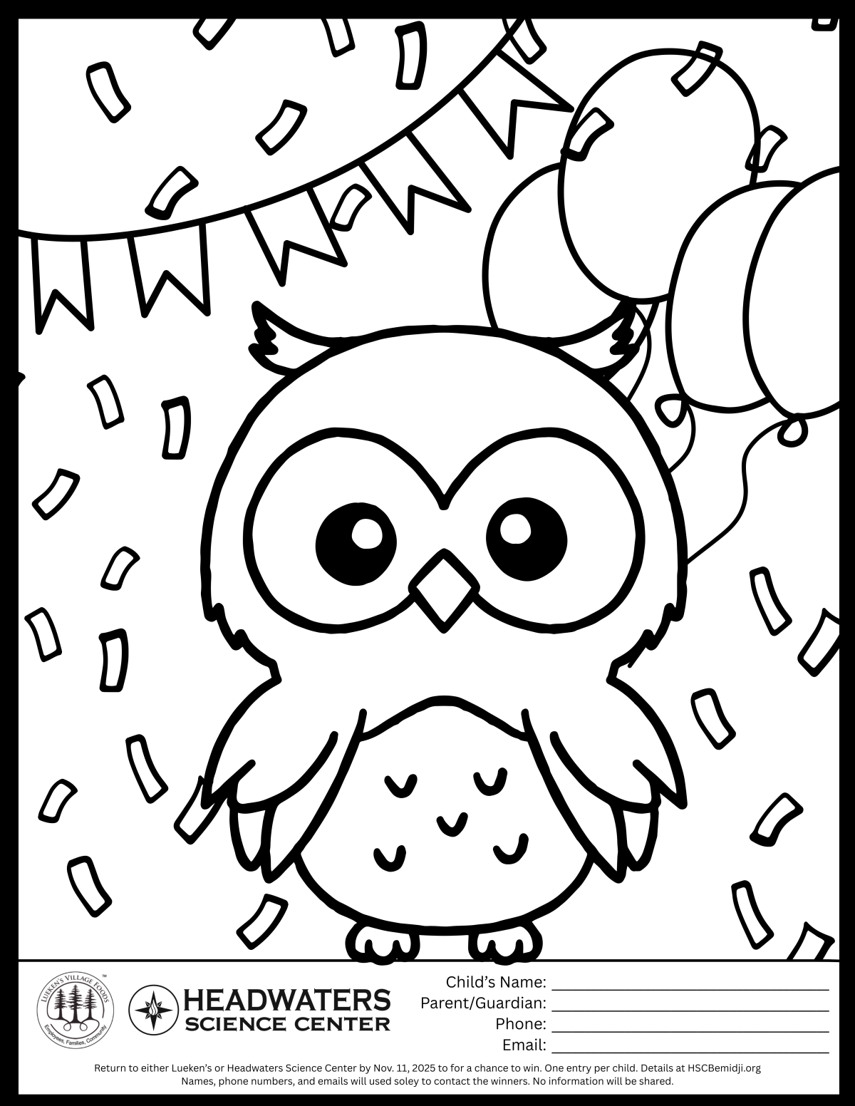 Download and print coloring sheet (click on image at right) - or pick up coloring sheet at Headwaters Science Center or Lueken's (North or South) - and return to HSC or either Lueken's North or South.